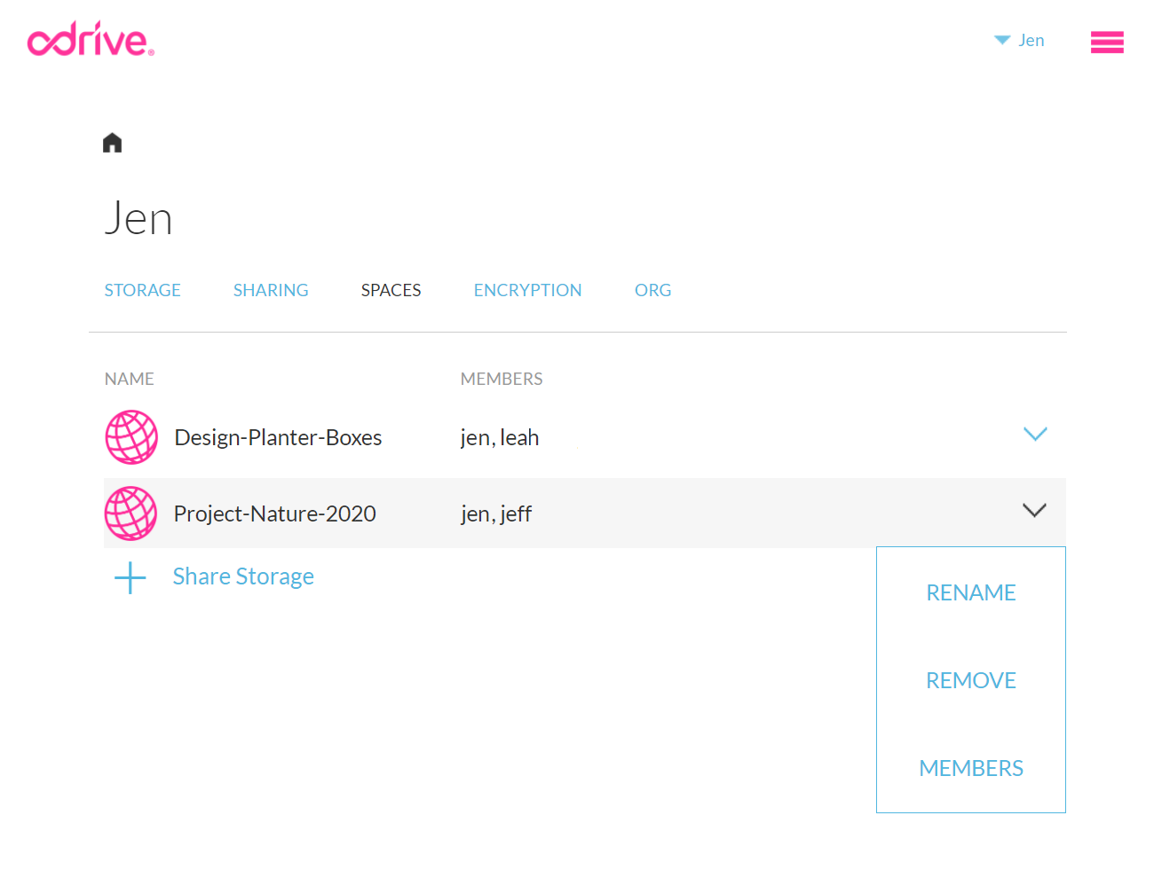Your odrive Spaces are listed here for you to edit. You can also create new Spaces from this view.
