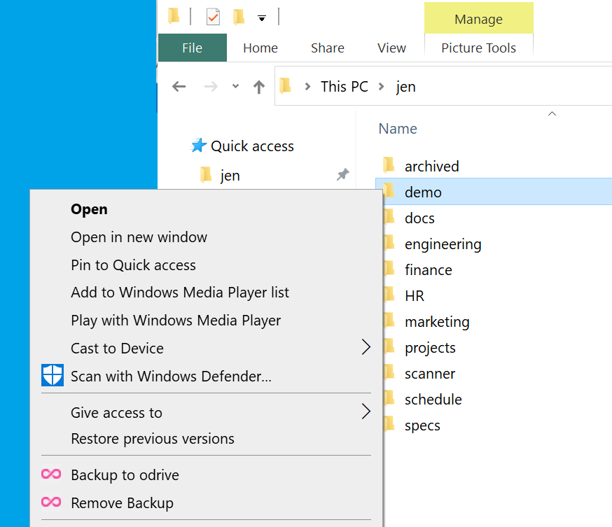 Alternatively, you can also navigate to the folder within Windows Explorer or Mac Finder and right-click on it. If the folder has any backup jobs configured for it, you will see the Remove Backup option available for the folder.