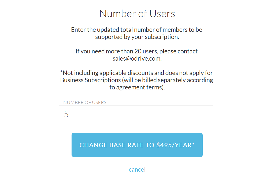 For major changes to your user count, you can always contact sales@odrive.com to see if we can help with any of your changing needs. Also, if you ever have any billing issues or notice that any final charges don't match, you can contact support@odrive.com and we will resolve any issues as painlessly as possible.