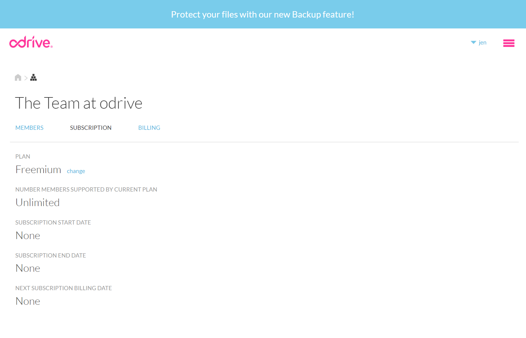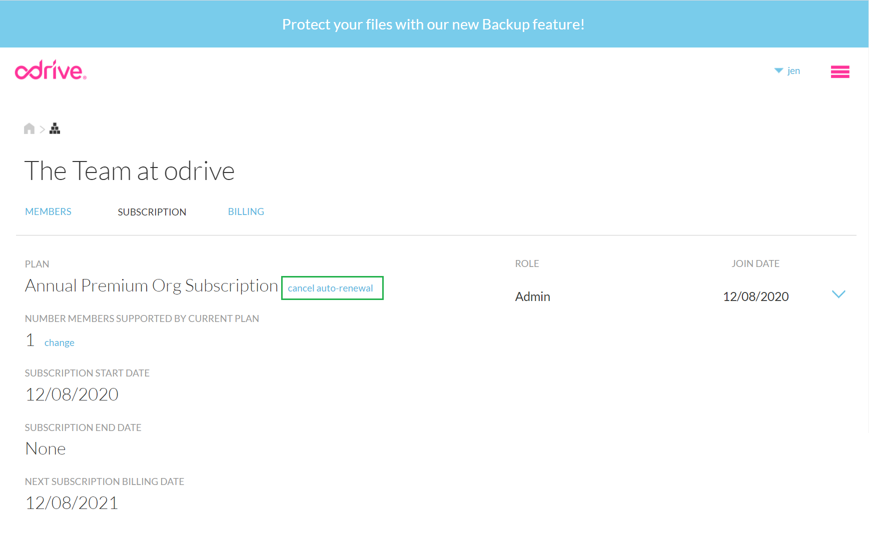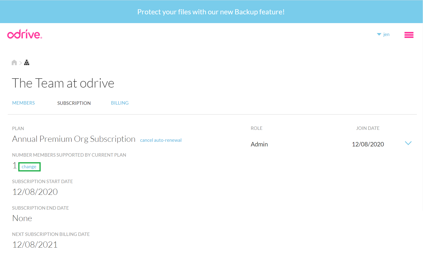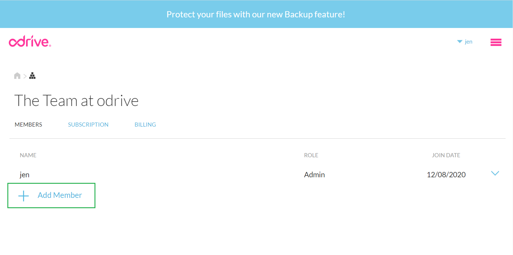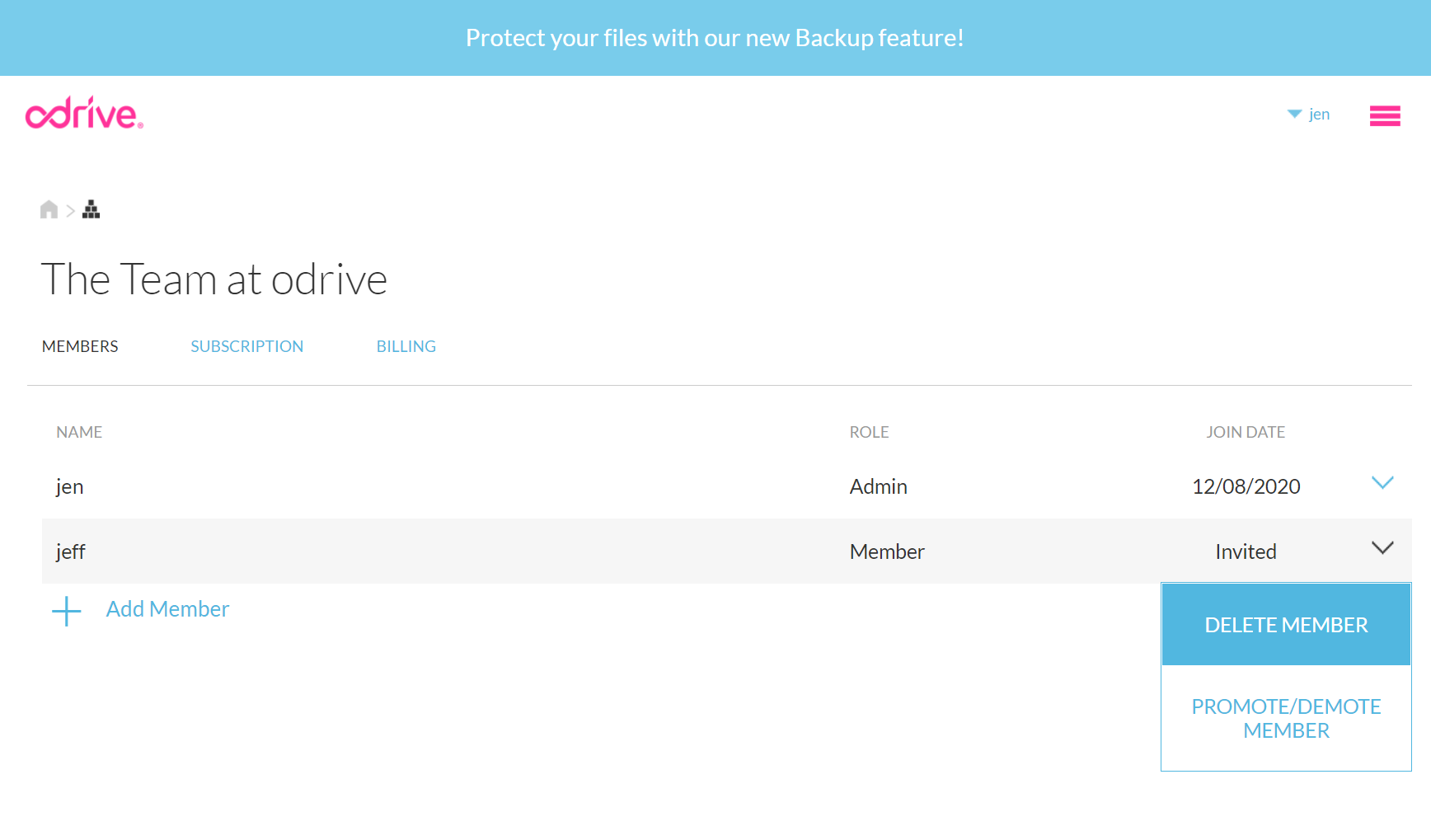 Once you promote the member to an Admin, they will see the ORG tab in their odrive home (no need for them to have to activate the Orgs feature individually like the Org creator had to do in the beginning) and can manage it just like you can.