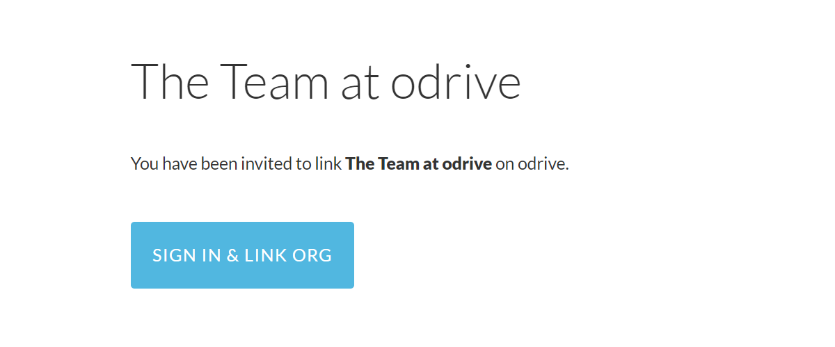 The confirmation screen will look slightly different if the user is not signed in to odrive currently. They'll be able to sign in with the user they want to join the Org with after pushing the SIGN IN & LINK ORG button.