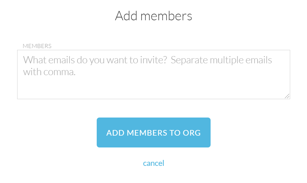 At the Create org dialog, give your Org a name and enter the email addresses to which you'd like to send the Org invitations. You don't need to have all of the invites figured out right now. You'll be given a chance to send new invites out at a future time at your convenience.