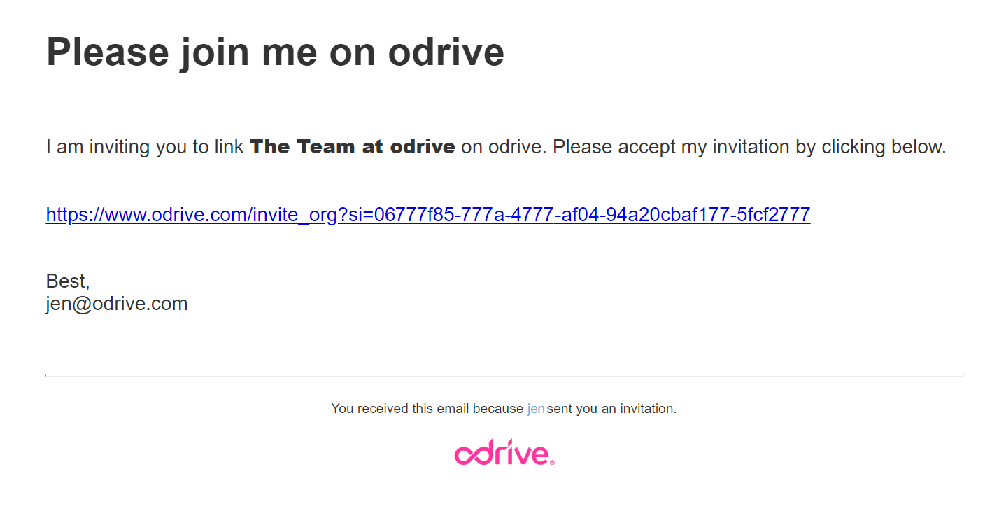 If the recipient doesn't have an odrive account yet, they will see the same dialog as for Confirmation to join Org (not signed in yet) immediately above when they click on the link in the invite email.